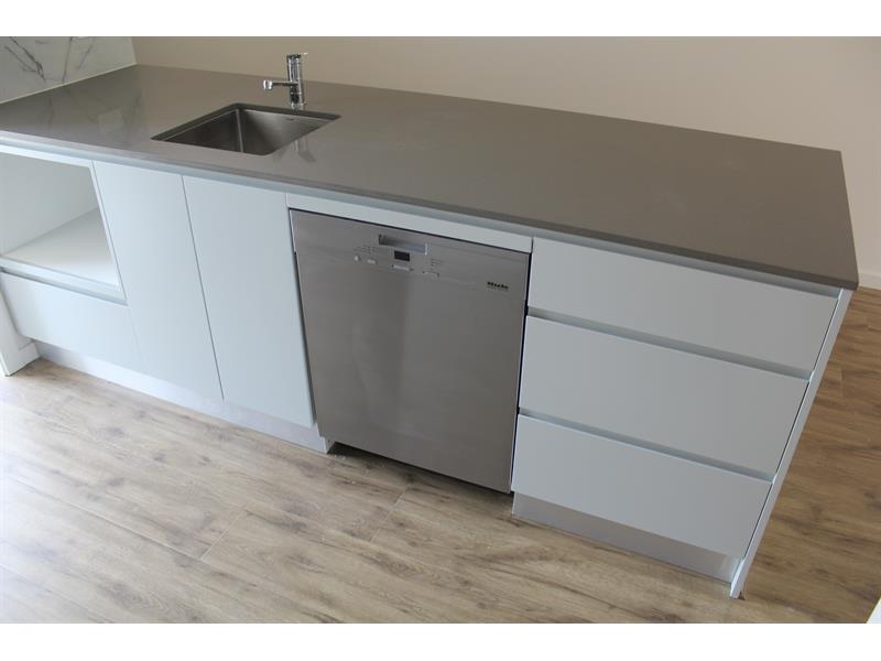 • Sleek kitchen with quality Miele appliances including dishwasher, gas cooktop, and stone benchtops