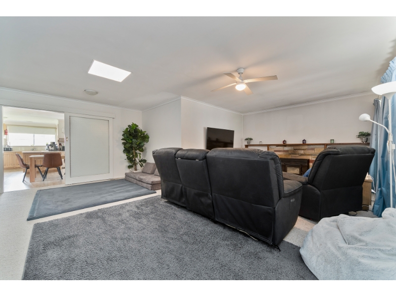 A generous rear yard with garden shed & a double carport has been enclosed with a roller door.
