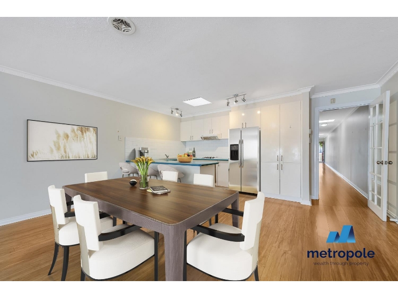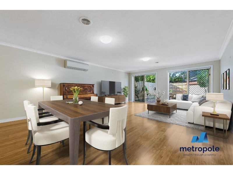 A central atrium adds light and character to this immaculately presented property while large glass windows and doors look out to a secluded paved outdoor garden/entertaining area.