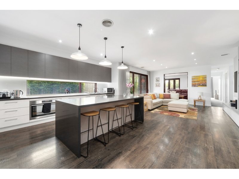 An abundance of natural light fills the main living zones with a gorgeous outlook onto the decked alfresco areas which are surrounded by the manicured backyard.
