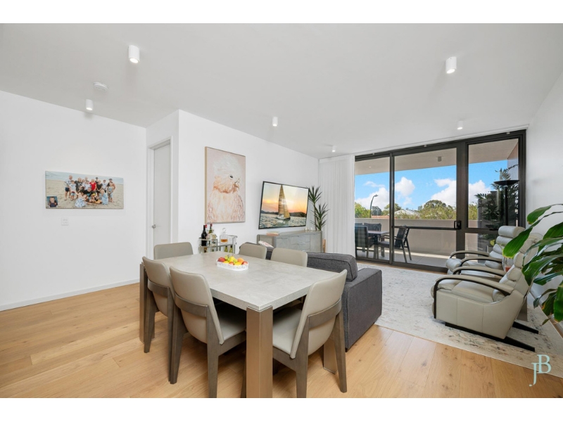 Taking pride of place in a north-facing corner position on the first floor of a recently completed landmark development, this magnificent apartment has been perfectly detailed with bespoke finishes by its loving owners to ensure that there is nothing for you to do but simply move in and enjoy all that this amazing location has to offer. With a northern treetop aspect with peeks of the city skyline and views to the playing fields of James Miller Oval from the over-sized balcony, this elegant apartment is in better-than-new condition, with an array of extras, and is the perfect place to simply move in and enjoy your luxury, easy care lifestyle.