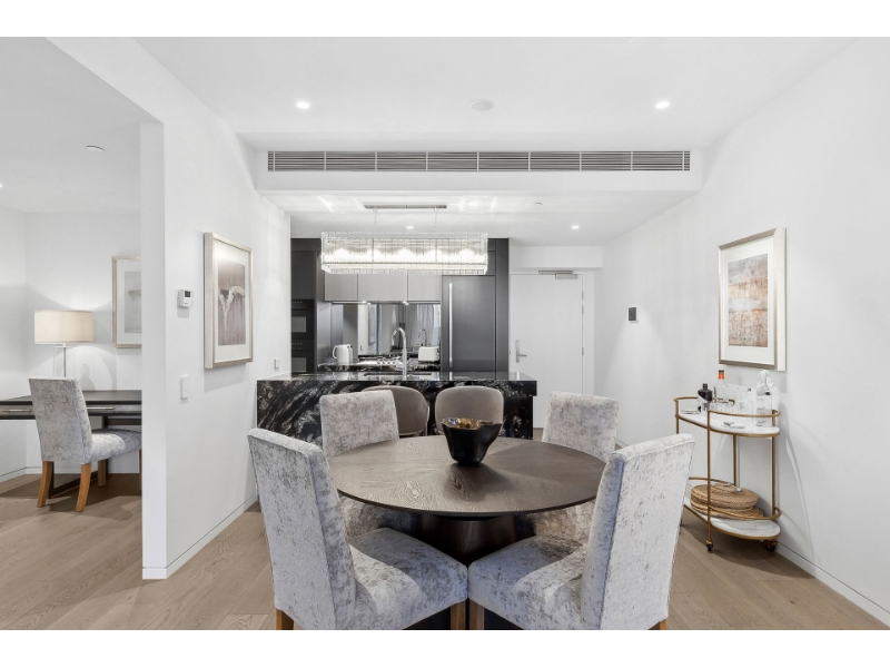 This north-facing 1-bedroom + study apartment level 33 boasts a spacious floorplan featuring an open plan living area and a wintergarden. The apartment is bathed in natural light, with only 6 apartments on the floor ensuring privacy and tranquility.