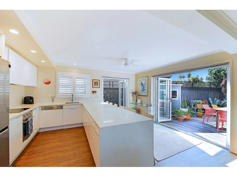 Renovated with quality in mind, the home features a spacious chef’s kitchen, dining, and living zone that flows seamlessly through to the alfresco areas. Bi-fold doors open the entire space to the north-facing timber deck, creating an inspired indoor–outdoor environment perfect for entertaining or unwinding. The covered front patio overlooks the pool, enhancing the property’s tranquil resort-style feel.