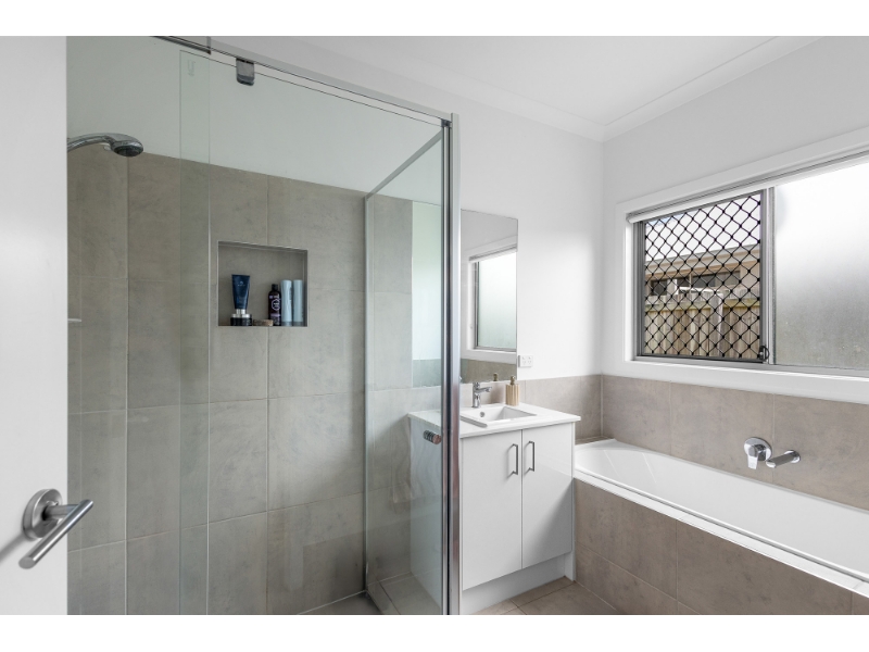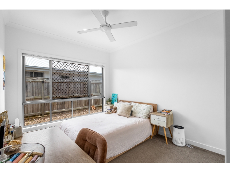 Inside, natural light moves beautifully through the interiors, enhancing the fresh, contemporary feel of the home. Tiled living areas offer durability and a clean finish, while the carpeted bedrooms introduce warmth and softness where it matters most. Ducted air conditioning, ceiling fans and security screens throughout add to the comfort, allowing for year-round liveability in every season.