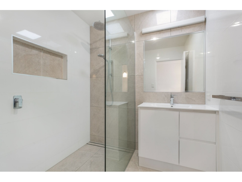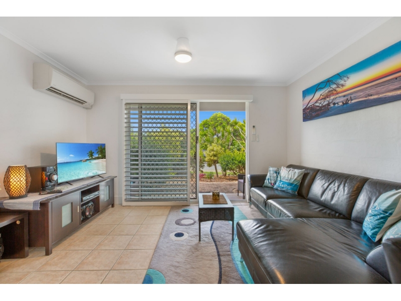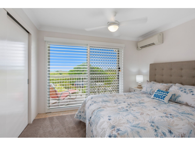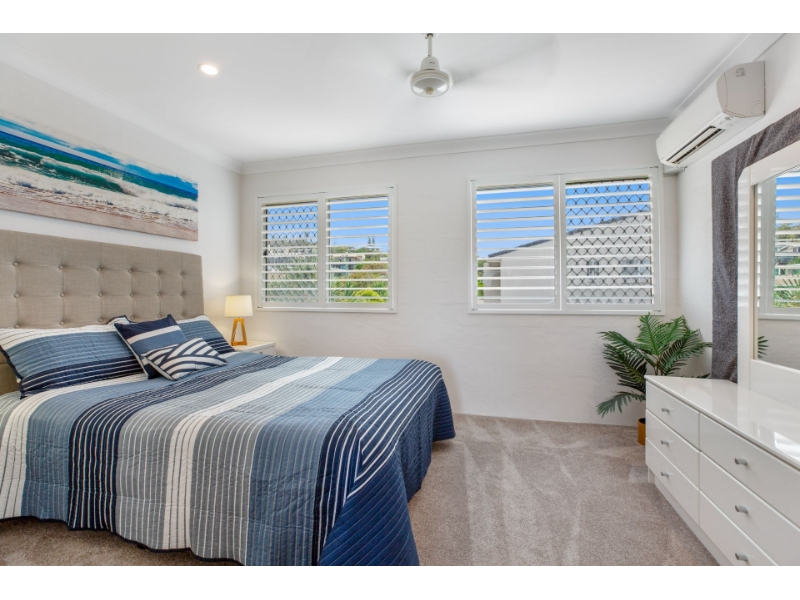 The home is arranged to feel practical and liveable rather than transient. Living and dining areas are light-filled and relaxed, with a layout that supports everyday rhythms, morning coffees, working from home, quiet evenings in, and easy informal entertaining. Ceiling fans and air-conditioning throughout ensure comfort across seasons, while natural light and coastal airflow keep the home feeling fresh and easy year-round.