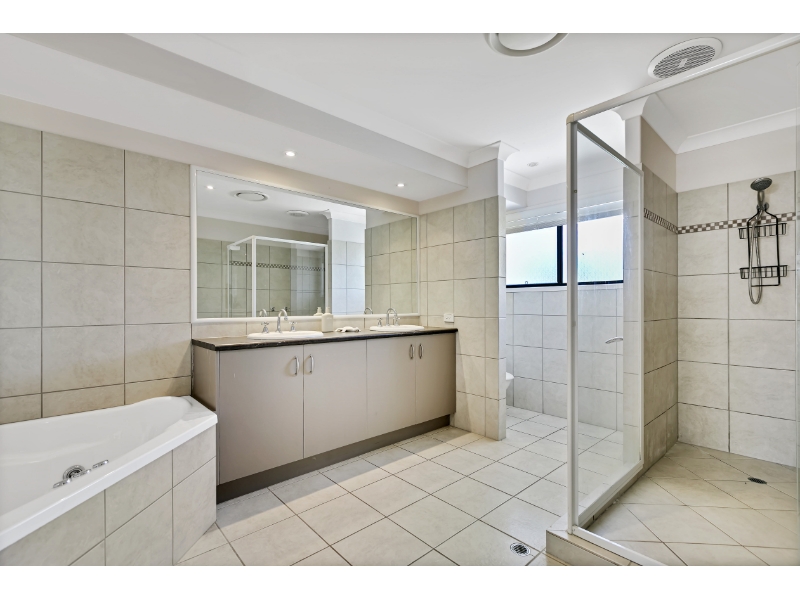 Set on a private 670m² corner block, the home is designed for easy-care living across two levels. With dual master suites upstairs and downstairs, it caters beautifully to large families, extended households, or those seeking flexibility. Originally designed with accessibility in mind, the ground-floor master includes a disability-friendly ensuite, while the upstairs suite boasts serene pool views, a walk-in robe, ensuite, and private balcony.