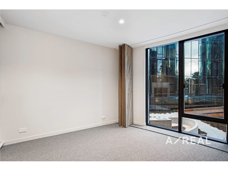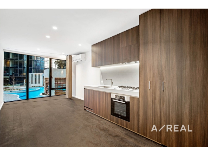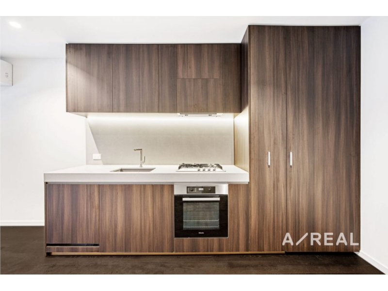 This brand new and immaculately presented one-bedroom apartment features a generous open plan living and dining area, complemented by a sophisticated kitchen fitted with top-of-the-range appliances and a striking stone benchtop. The spacious bedroom includes built-in robes, while the stylish bathroom is fully tiled and enhanced with a practical shower bench. Throughout the home, rich timber flooring and premium fixtures contribute to an elevated modern finish.