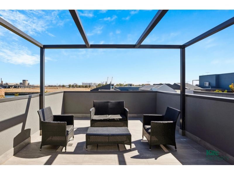 Kite Property is thrilled to present this beautifully designed three-bedroom, three-story corner home that seamlessly blends style, functionality, and generous space in a peaceful setting. Located within the highly sought-after Dock One precinct in the heart of vibrant Port Adelaide, every detail of this exceptional residence has been thoughtfully crafted to offer comfort, convenience, and luxury.
